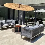 Acogedor Departamento De Lujo Apartment looks out onto the inner courtyard and comprises an adjoining terrace and a seating area. A bathtub and a walk-in shower are also featured in the bathroom. Additionally, you'll find a hairdryer and bath sheets.